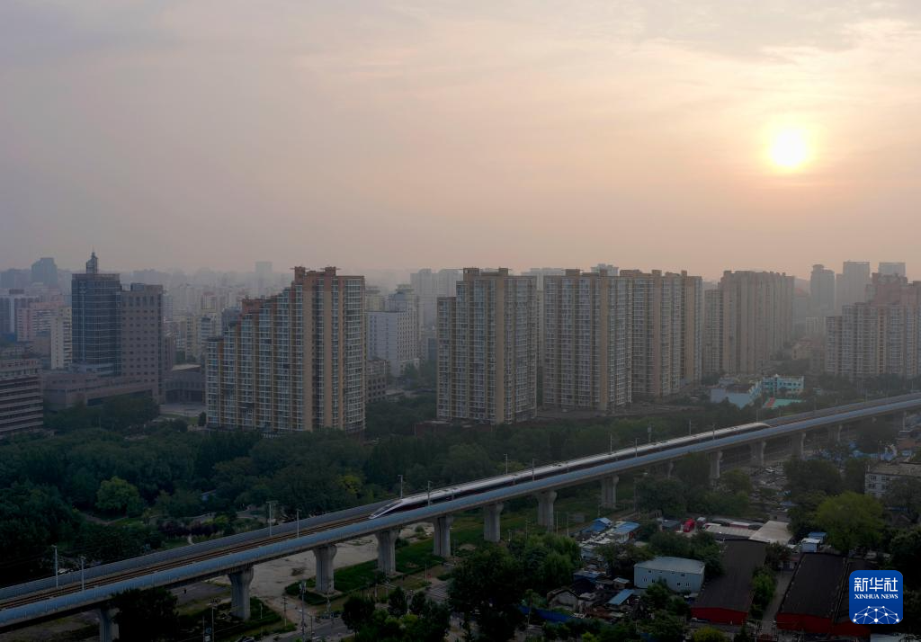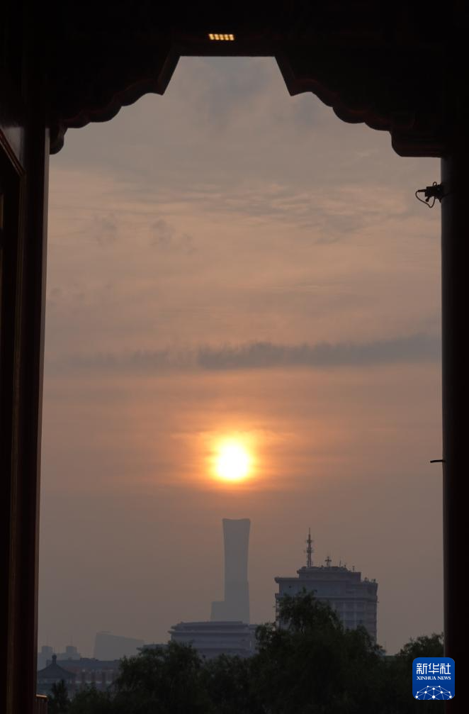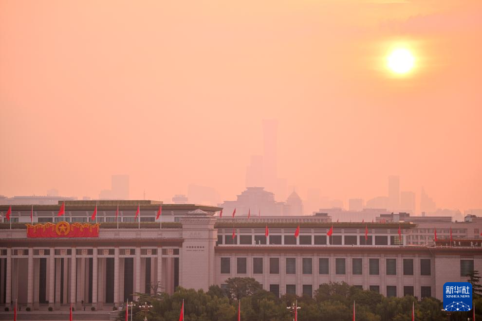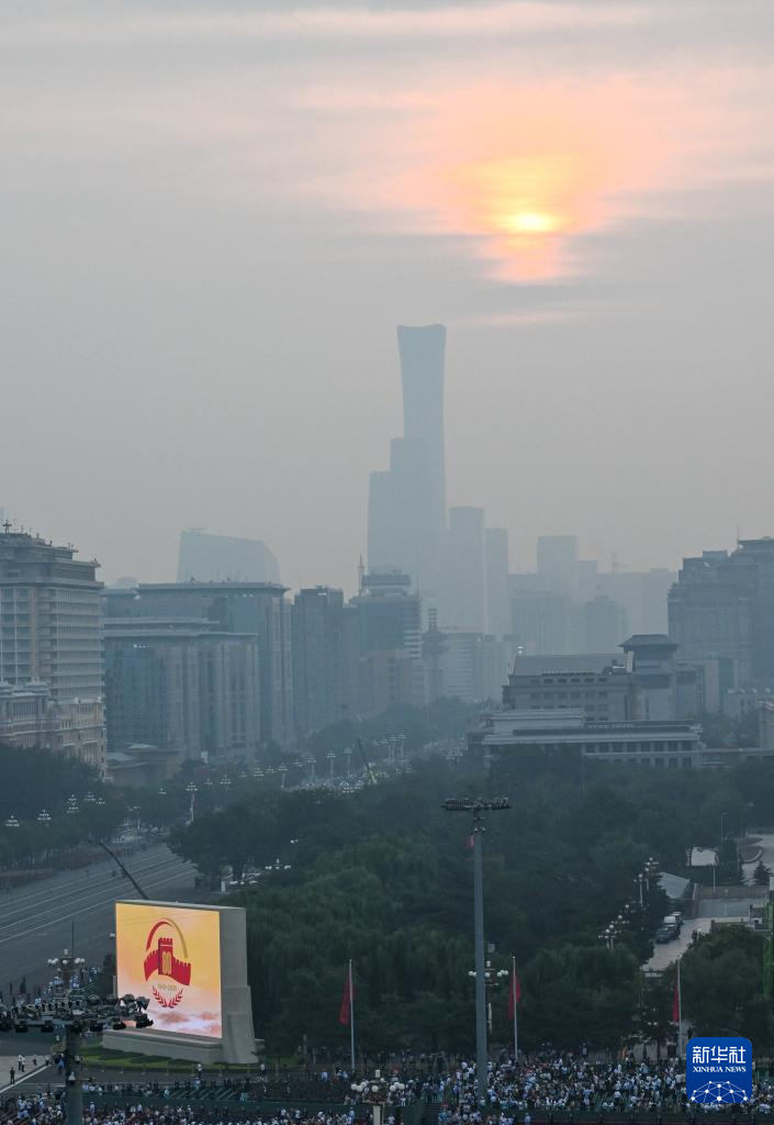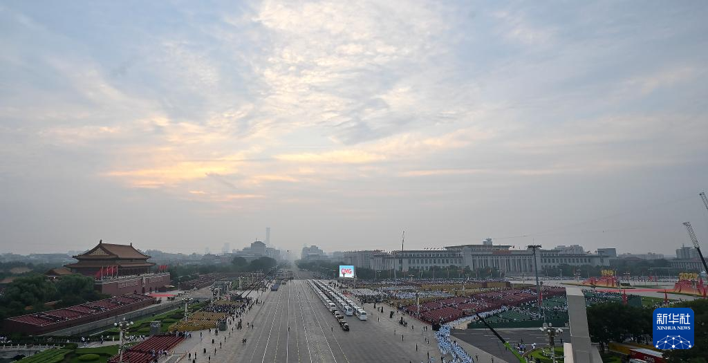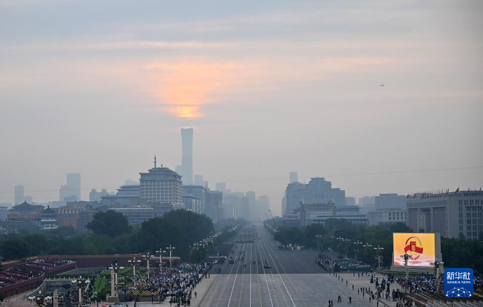 9月3日在天安门城楼上拍摄的北京的清晨。