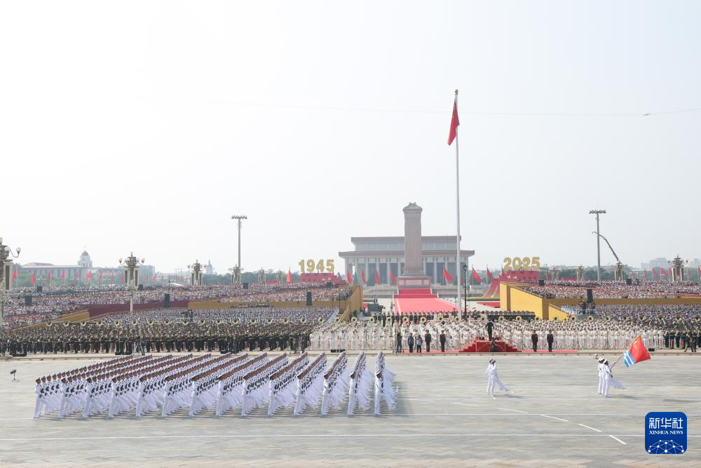 9月3日,纪念中国人民抗日战争暨世界反法西斯战争胜利80周年大会在北京隆重举行。这是海军方队走过天安门广场。