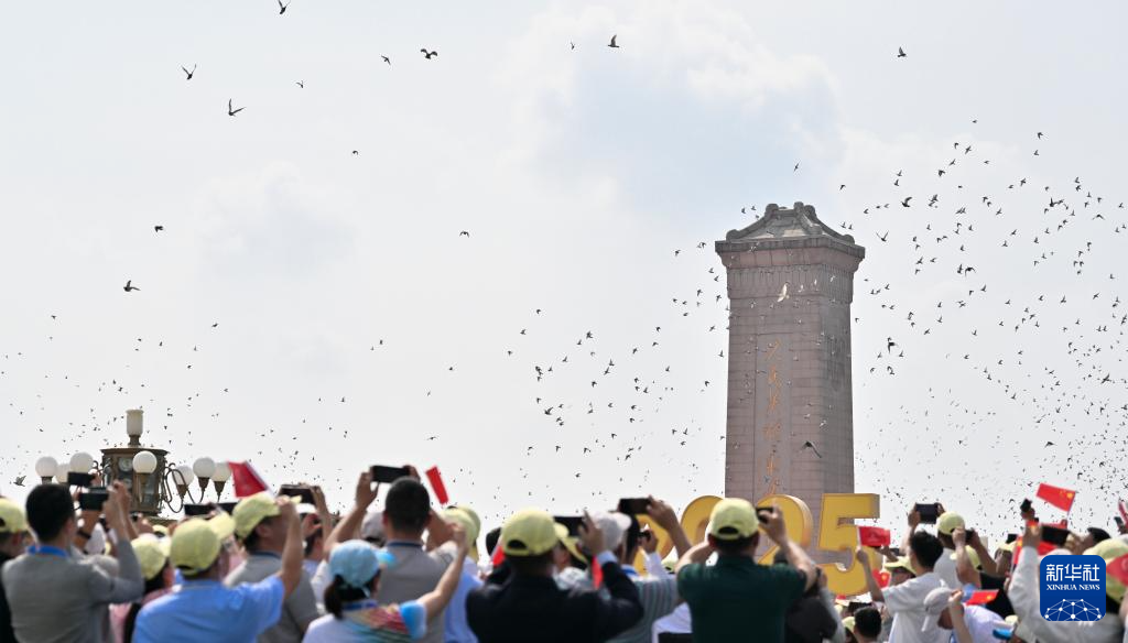 9月3日,纪念中国人民抗日战争暨世界反法西斯战争胜利80周年大会在北京隆重举行。这是天安门广场放飞鸽子。