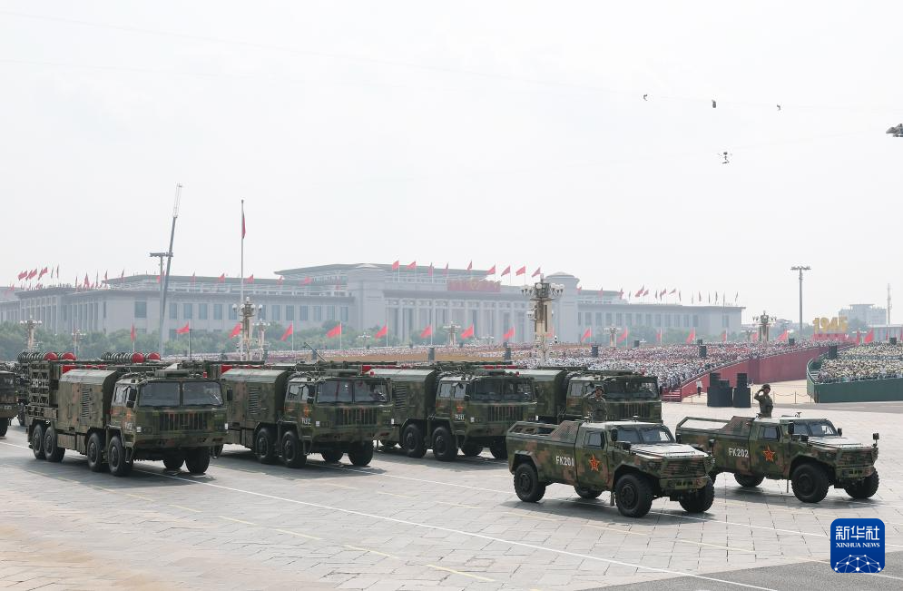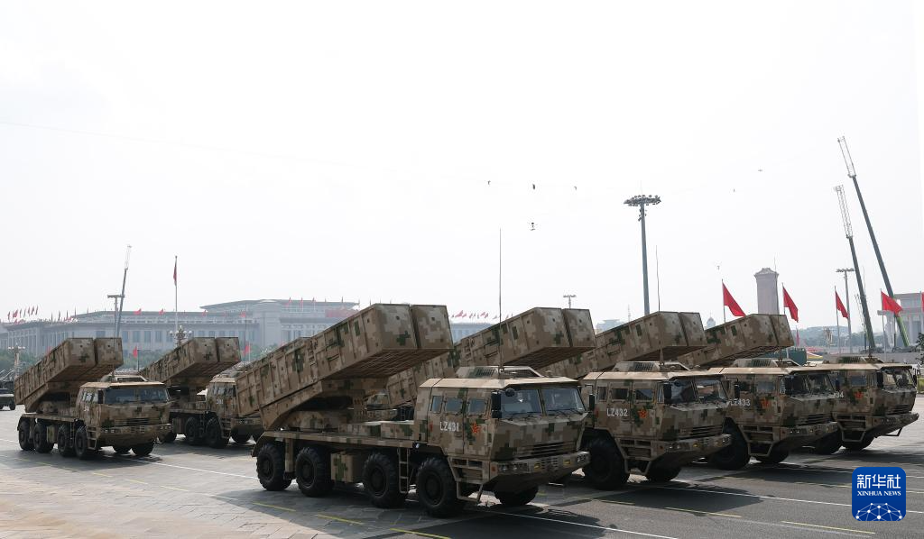 9月3日,纪念中国人民抗日战争暨世界反法西斯战争胜利80周年大会在北京隆重举行。这是远程火炮方队接受检阅。