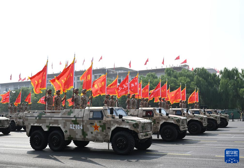 9月3日,纪念中国人民抗日战争暨世界反法西斯战争胜利80周年大会在北京隆重举行。这是战旗方队接受检阅。
