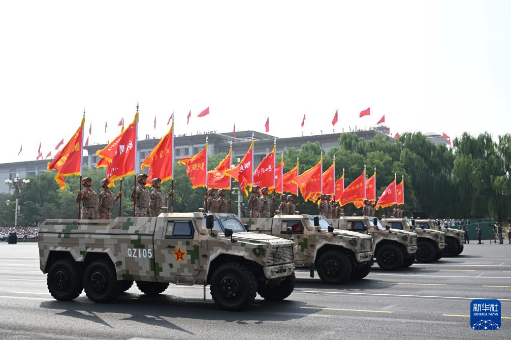 9月3日,纪念中国人民抗日战争暨世界反法西斯战争胜利80周年大会在北京隆重举行。这是战旗方队行进在长安街上。