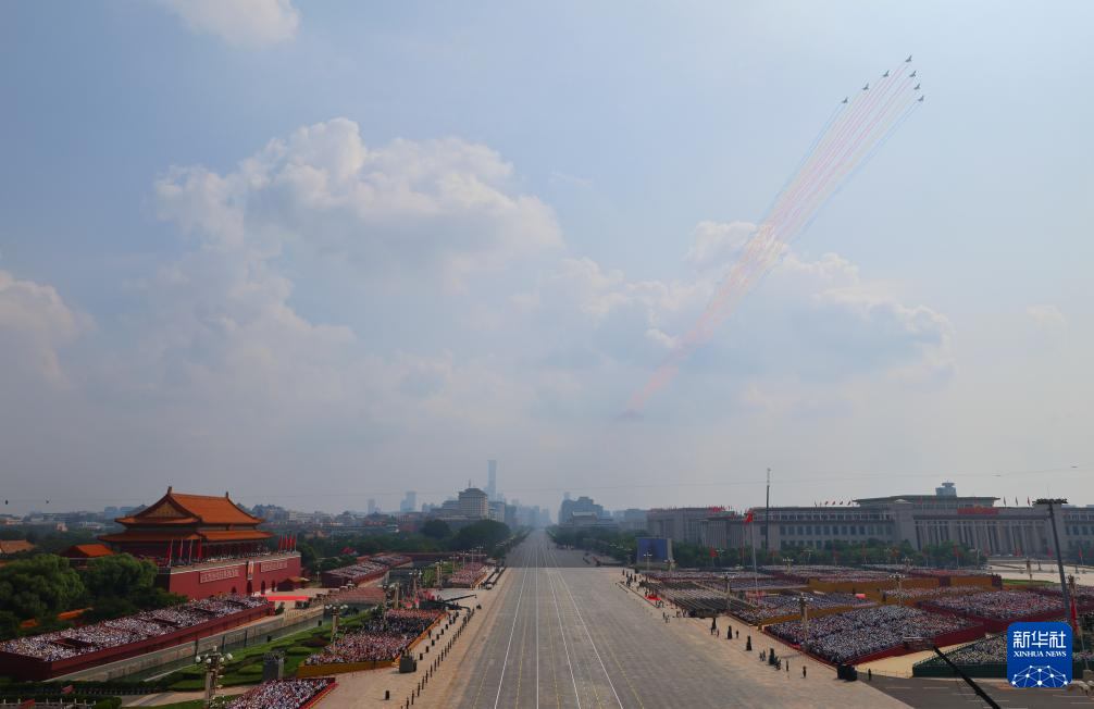 9月3日,纪念中国人民抗日战争暨世界反法西斯战争胜利80周年大会在北京隆重举行。这是空中梯队接受检阅。