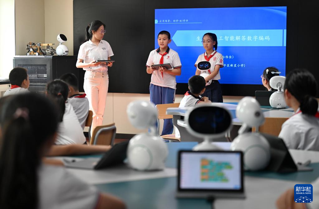 9月4日,天津市和平区新星小学学生在课堂上分享暑期学习成果。