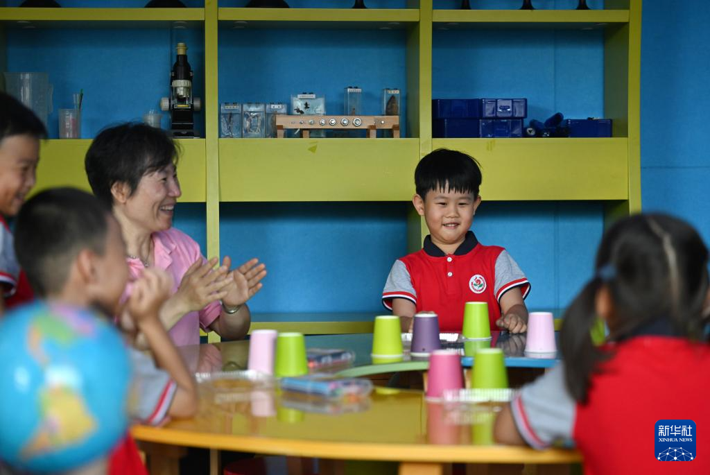 9月4日,天津市和平区第五幼儿园的小朋友们在手工制作课堂上。