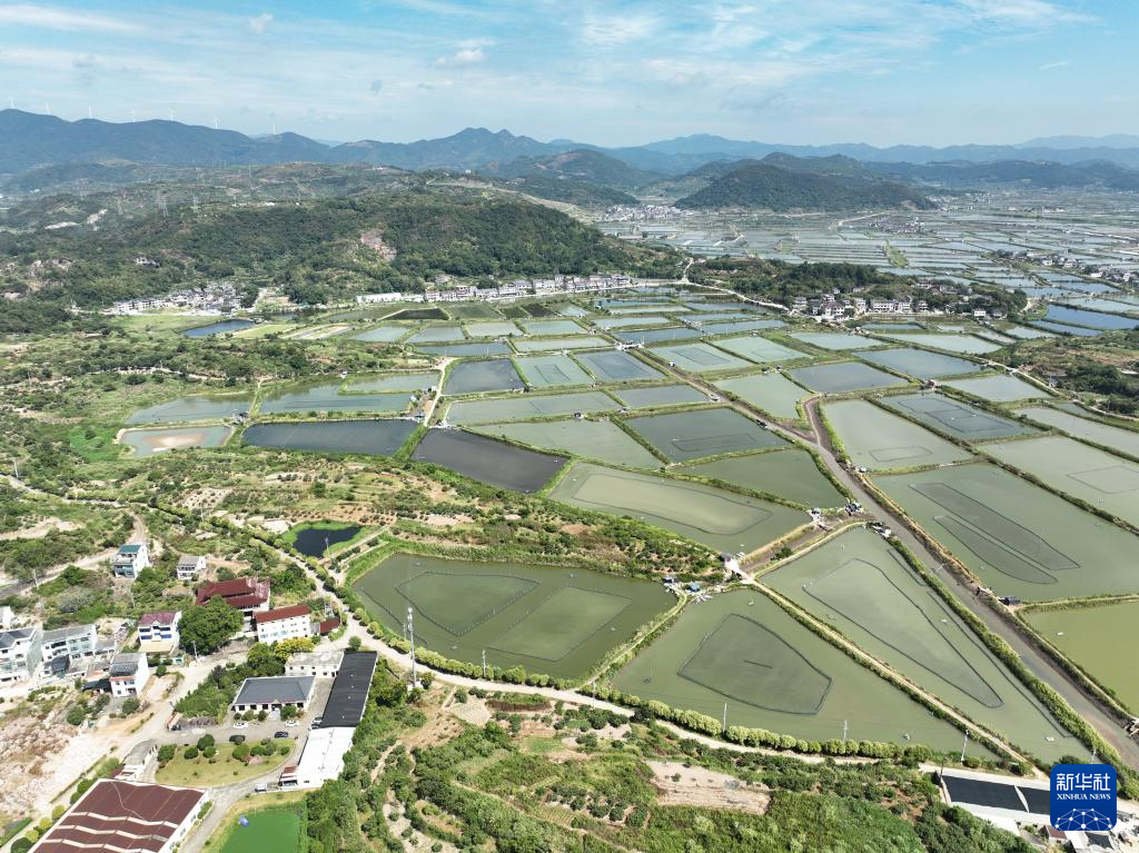 鸟瞰宁海县一市镇的蟹塘(9月2日摄,无人机照片)。