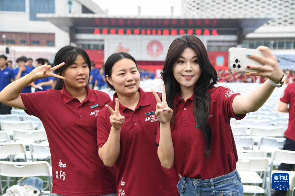 9月5日,新生在北京交通大学2025级新生开学典礼现场合影留念。