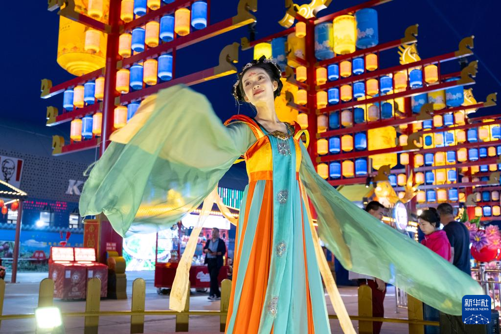 9月4日,在内蒙古乌兰察布市“乌兰察布之夜”特色街区,演员在表演舞蹈。