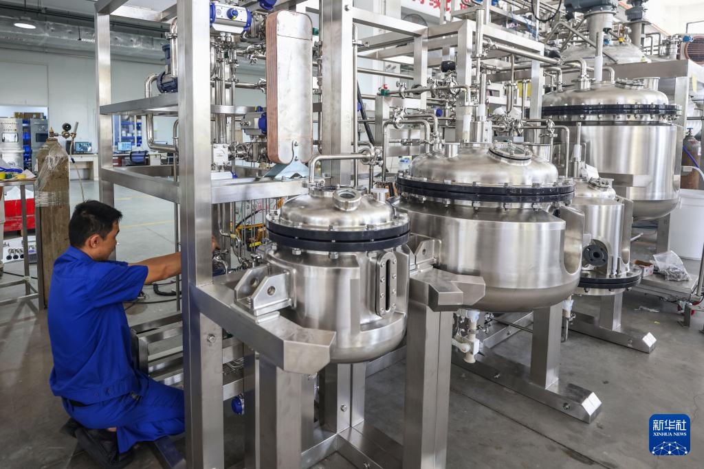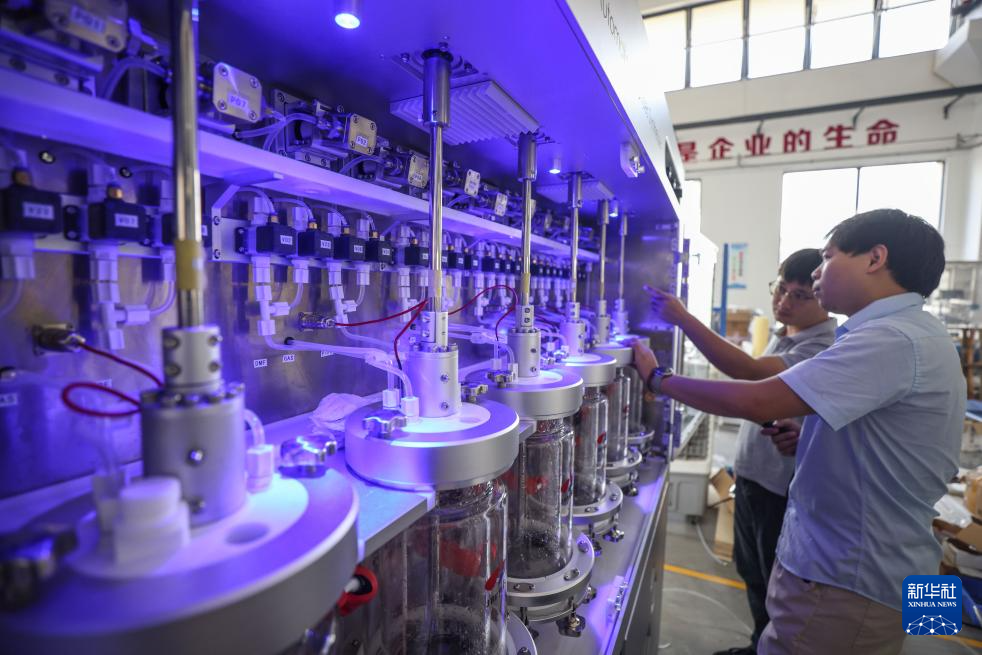 9月4日,海南建邦制药科技有限公司的工作人员在测试多肽制药设备。
