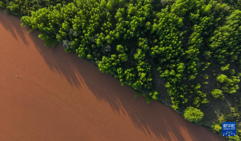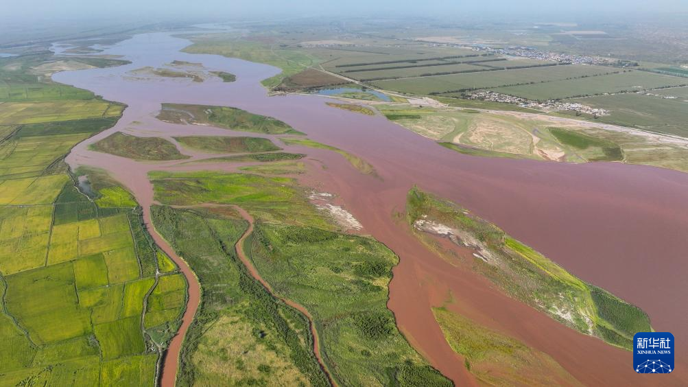 这是9月6日在宁夏石嘴山市平罗县境内拍摄的黄河滩涂(无人机照片)。