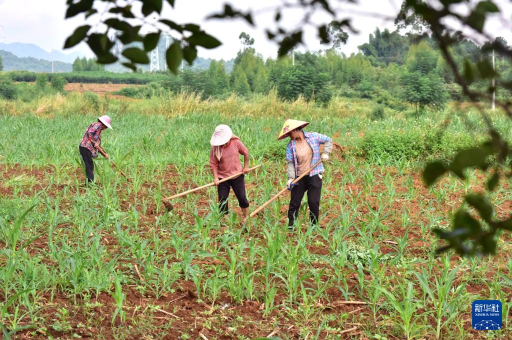 9月5日,广西贺州市平桂区羊头镇大井村农民在玉米地里除草。