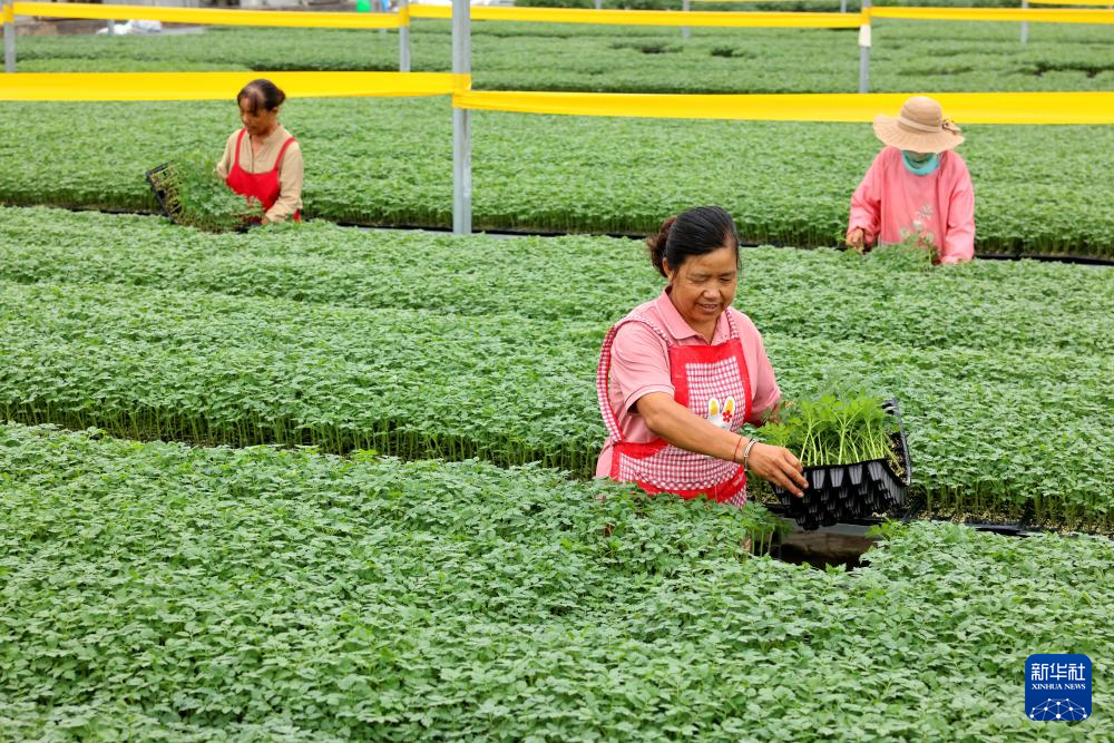 9月6日,农民在山东省枣庄市市中区西王庄镇蔬菜育苗基地管护蔬菜秧苗。