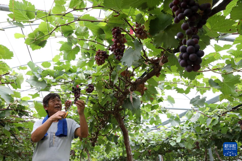 9月6日,在山东省滨州市博兴县庞家镇焦集村,农民采摘葡萄。
