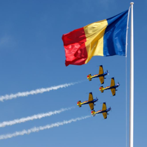 8月30日,来自罗马尼亚的特技飞行表演队在布加勒斯特国际航展上进行飞行表演。