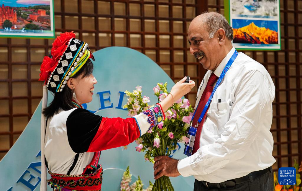 9月6日,在2025全球南方媒体智库高端论坛开幕式开始前,与会代表手持鲜花留影。