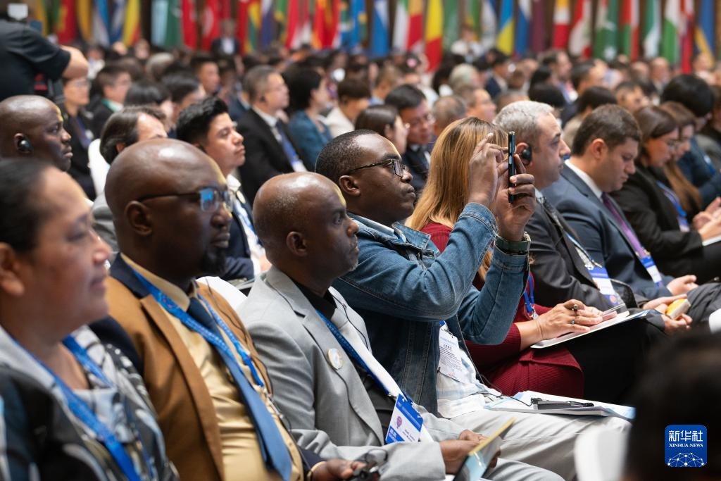 9月6日,与会代表在2025全球南方媒体智库高端论坛开幕式现场录制视频。