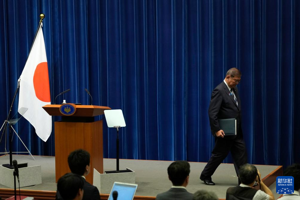 9月7日,日本首相、执政党自民党总裁石破茂在日本东京首相官邸出席记者会后离开。