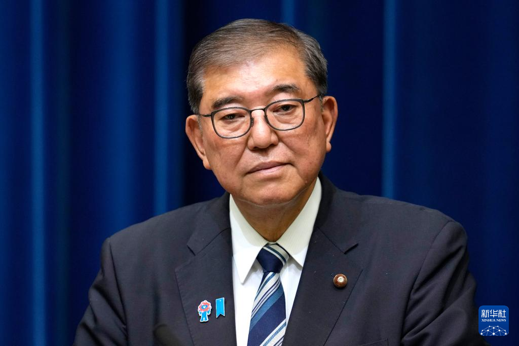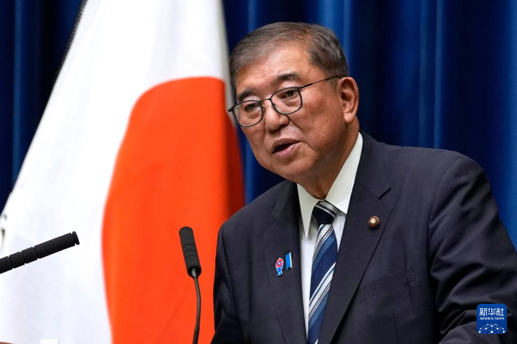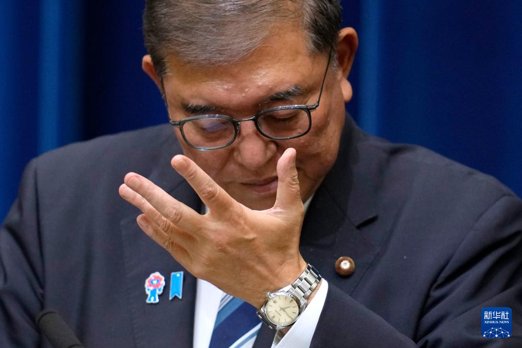 9月7日,日本首相、执政党自民党总裁石破茂在日本东京首相官邸出席记者会。