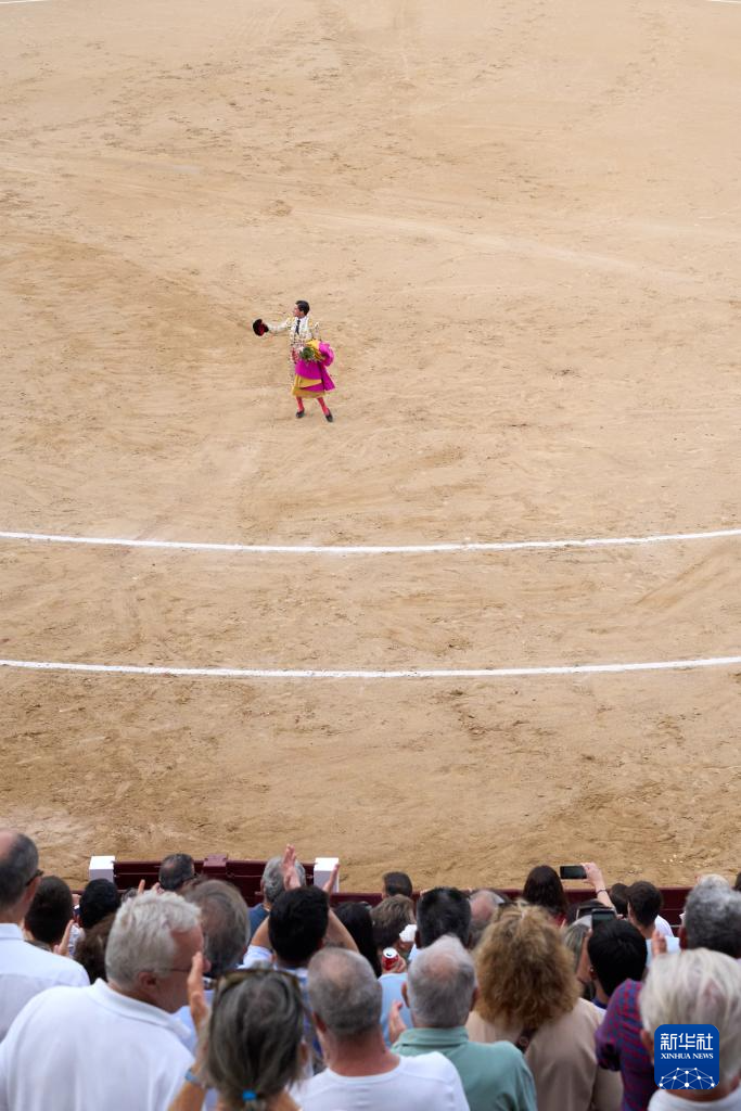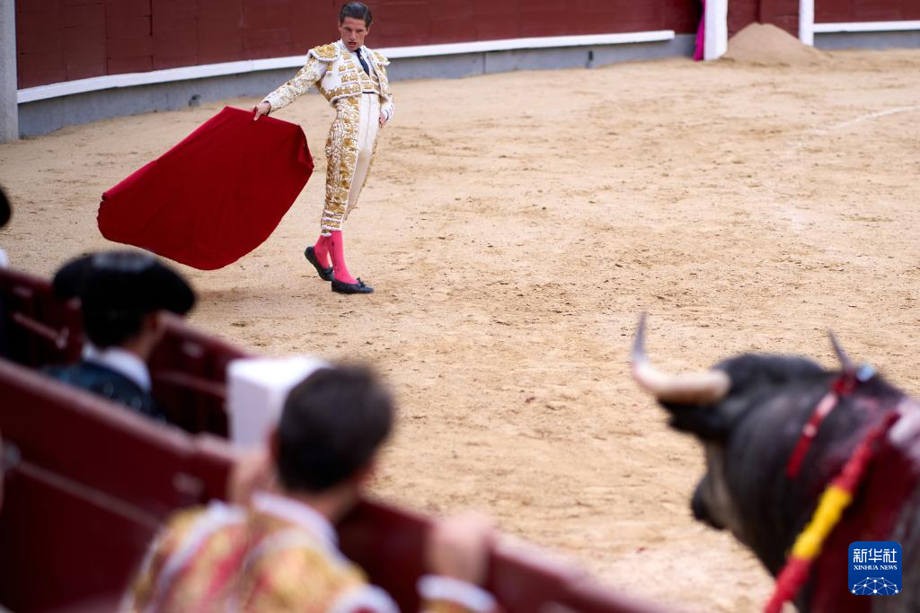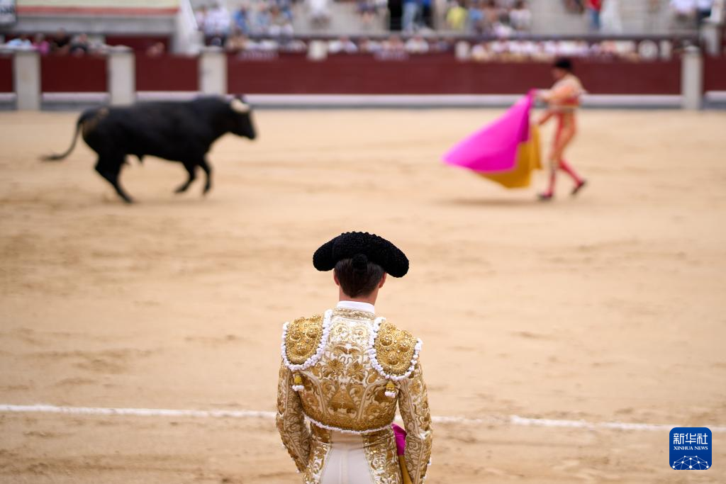 9月7日,一名斗牛士在西班牙马德里拉斯本塔斯斗牛场内谢幕。