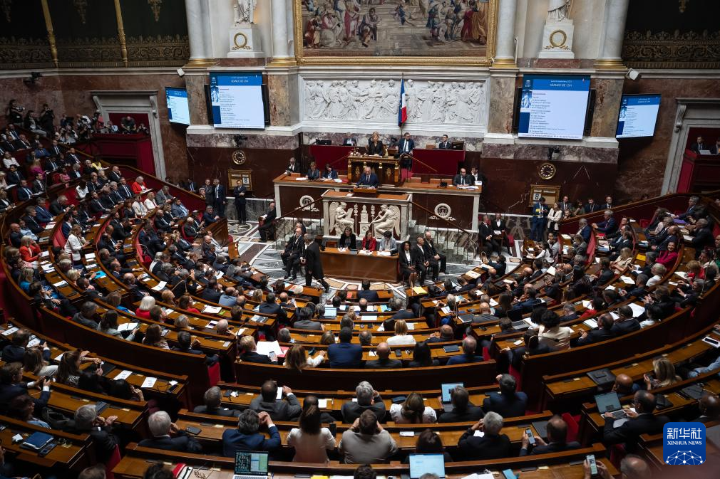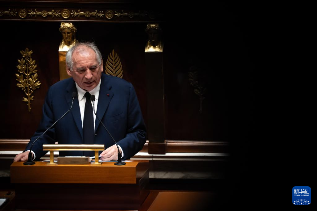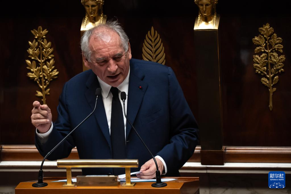 9月8日,法国总理贝鲁在位于巴黎的国民议会内发表演讲。新华社发(奥雷利安·莫里萨尔摄)