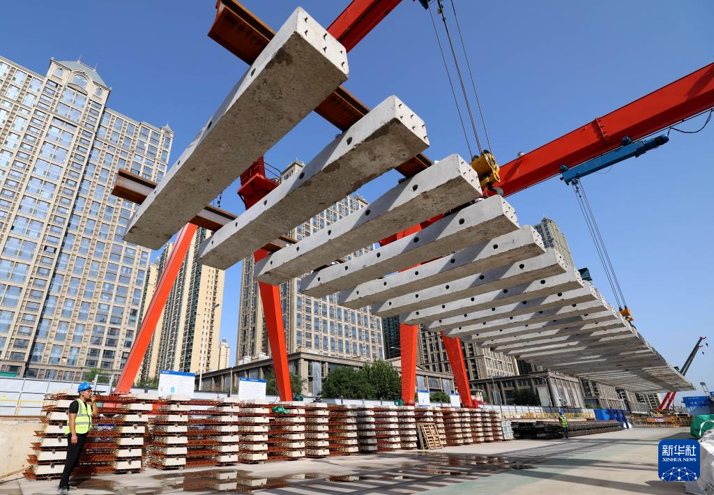 9月7日,工人在石家庄地铁4号线一期工程东垣东路站建设工地施工。