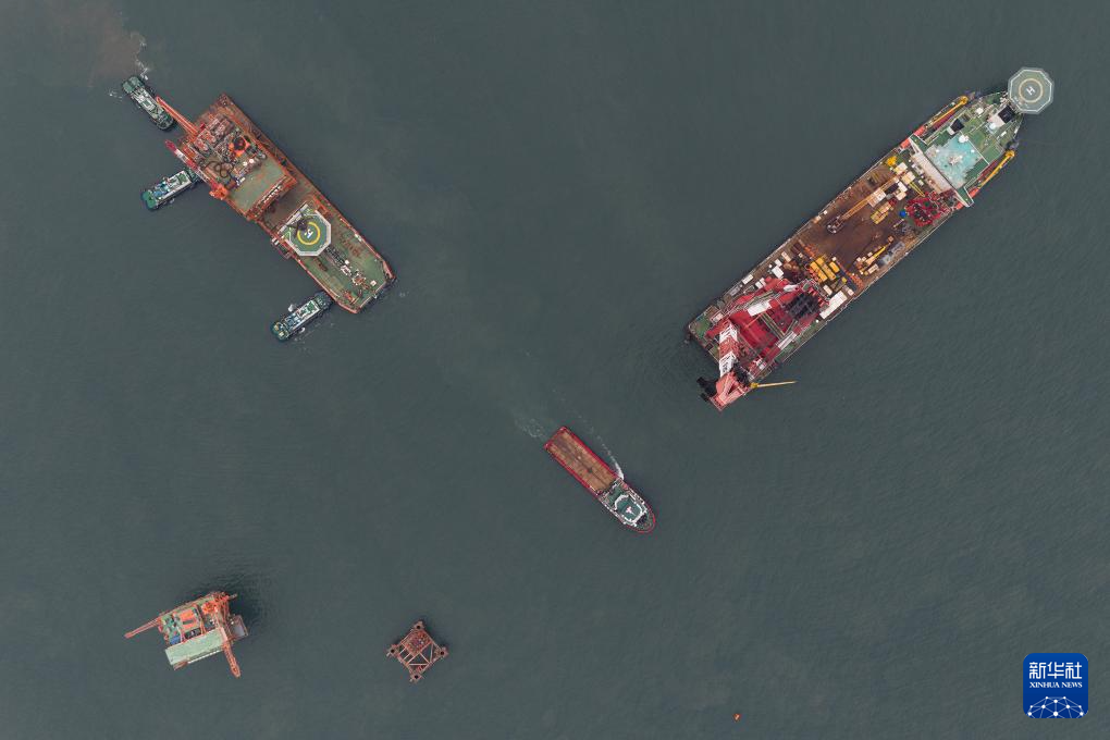 这是9月8日在渤海海域拍摄的垦利6-1油田10-1北区块Ⅱ期开发项目油气平台安装作业现场(无人机照片)。