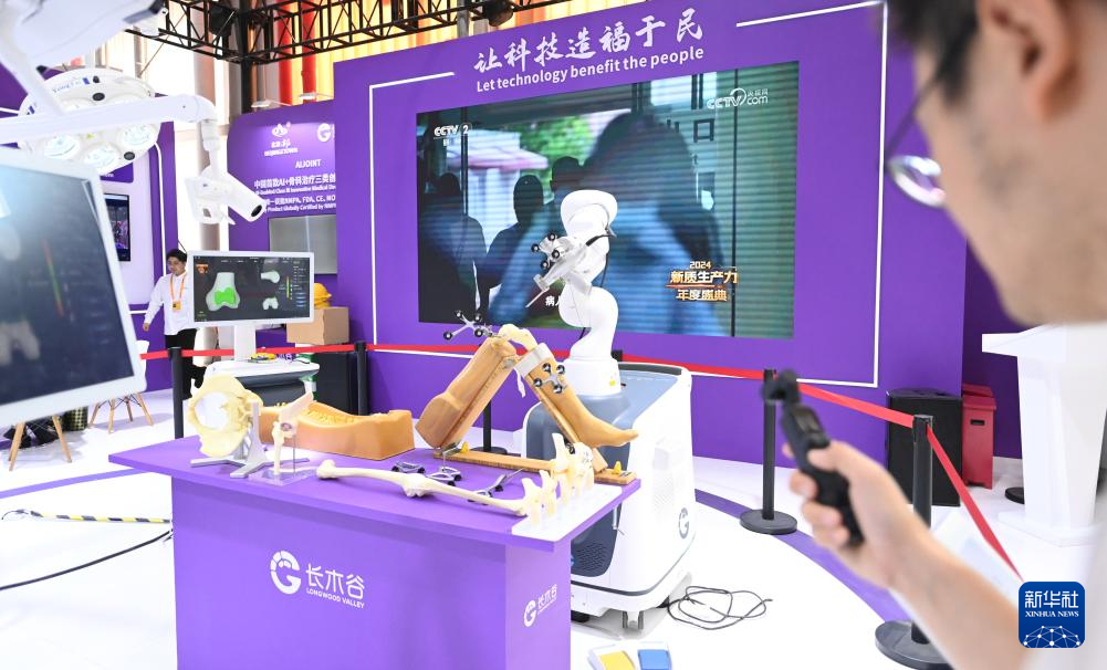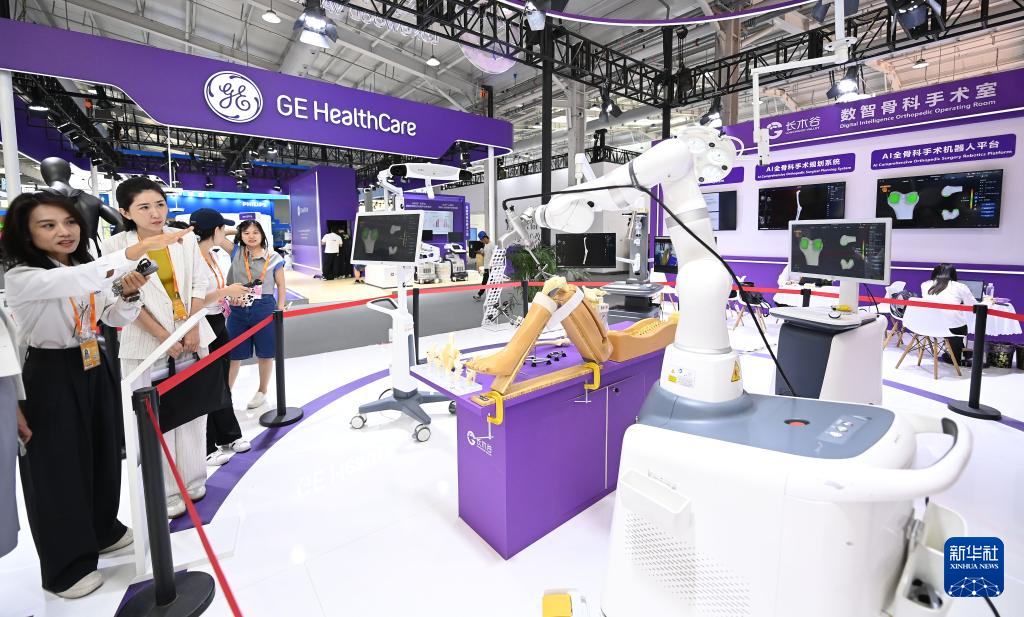 9月9日,参观者在服贸会展厅参观“数智骨科手术室”。