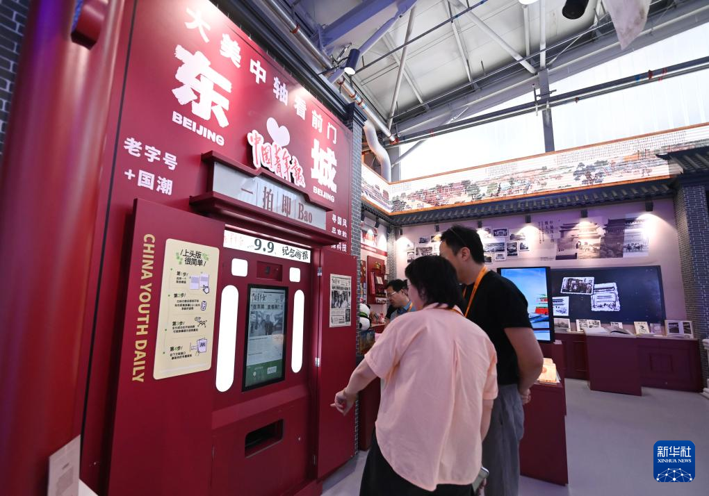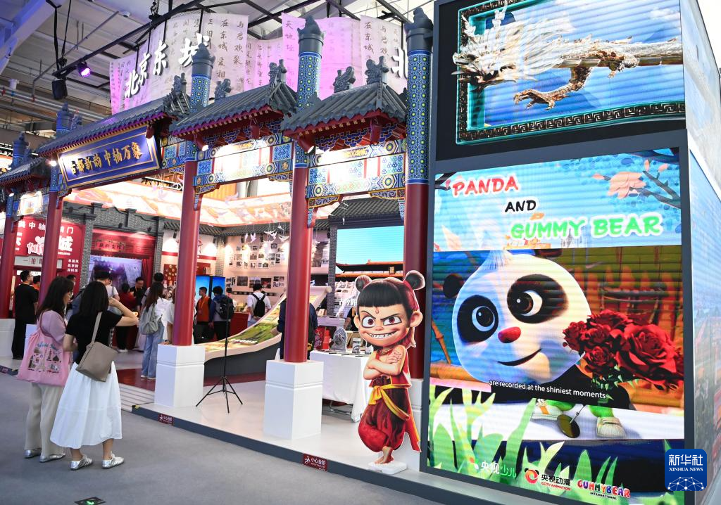 9月9日,参观者在服贸会展厅的北京东城展位参观。