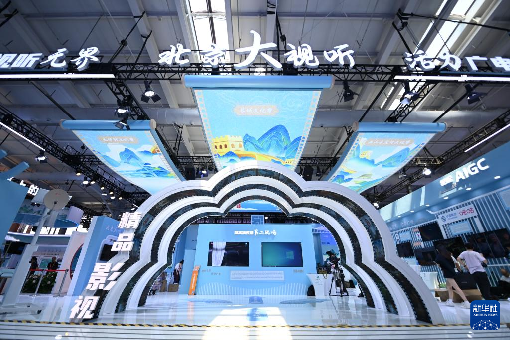 这是9月9日在服贸会展厅拍摄的北京大视听展位。