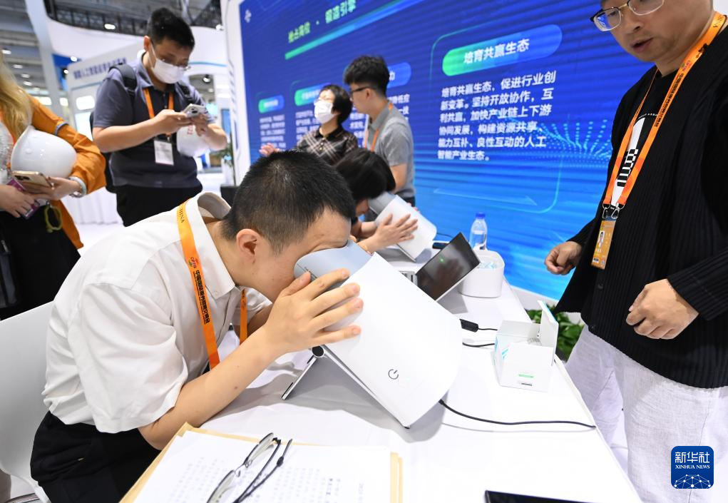 9月9日,参观者在服贸会展厅体验“AI眼底相机”。