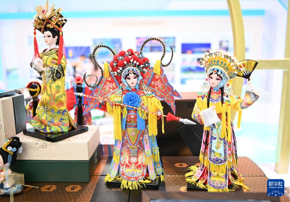 9月9日在服贸会展厅拍摄的国家级非物质文化遗产北京绢人展品。