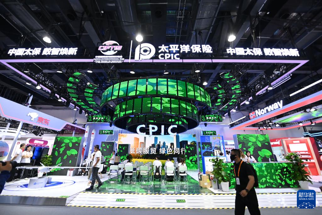 这是9月9日在服贸会展厅拍摄的中国太平洋保险展位。
