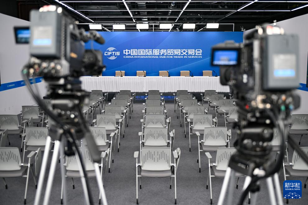 这是9月9日拍摄的本届服贸会新闻中心的新闻发布厅。