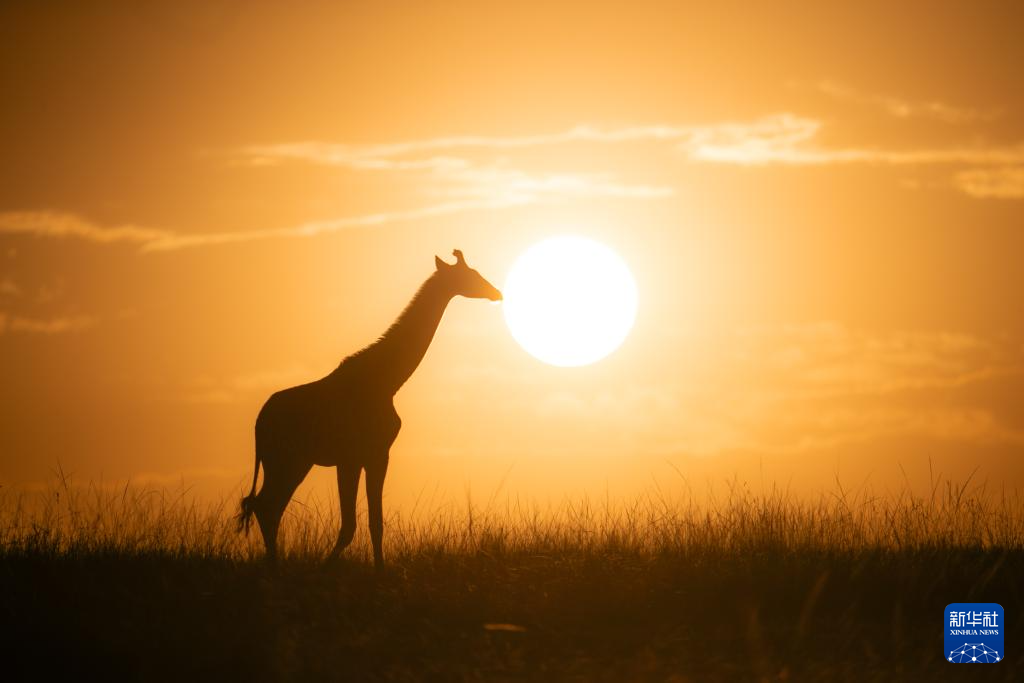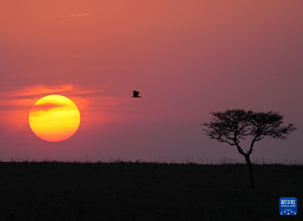 这是9月6日在肯尼亚马赛马拉国家保护区拍摄的落日余晖。