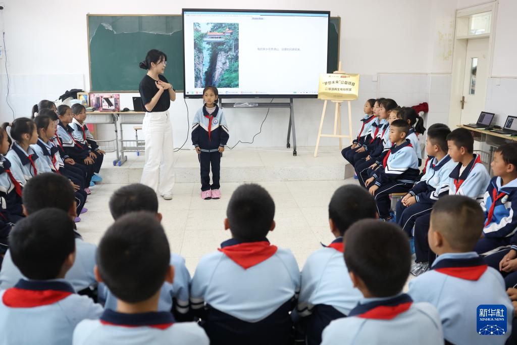 9月10日,盐川学校的学生在再生电脑教室里体验AI课程。