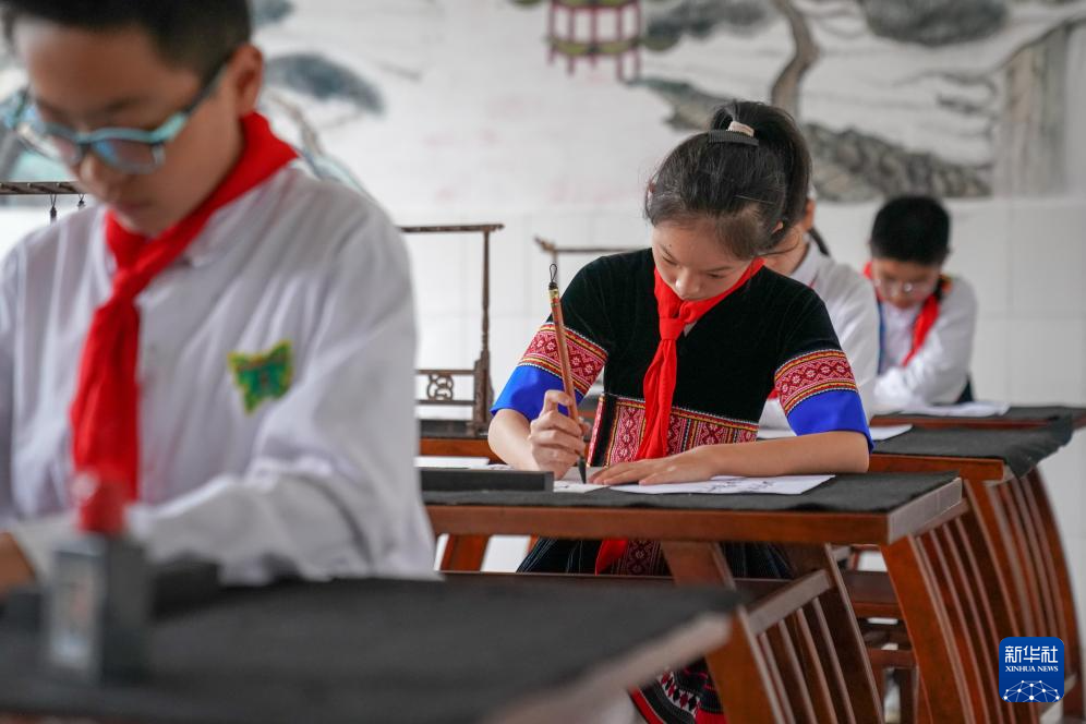 9月9日,中国-赤道几内亚友谊小学的孩子在展示书法。