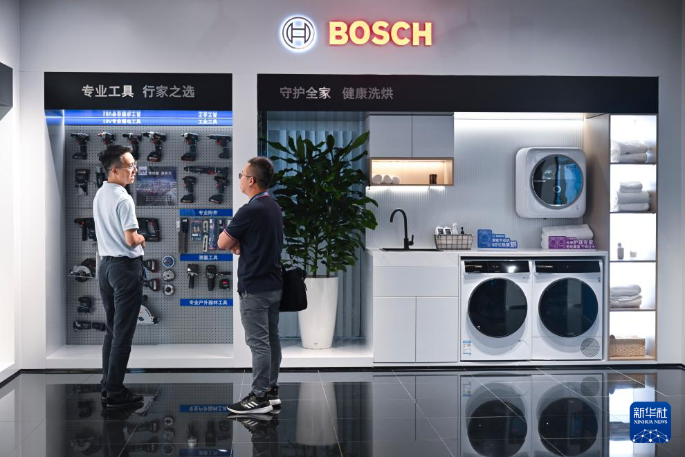 9月10日,在上海虹桥临空经济示范区内的博世公司展厅,来访者在展品前交流。