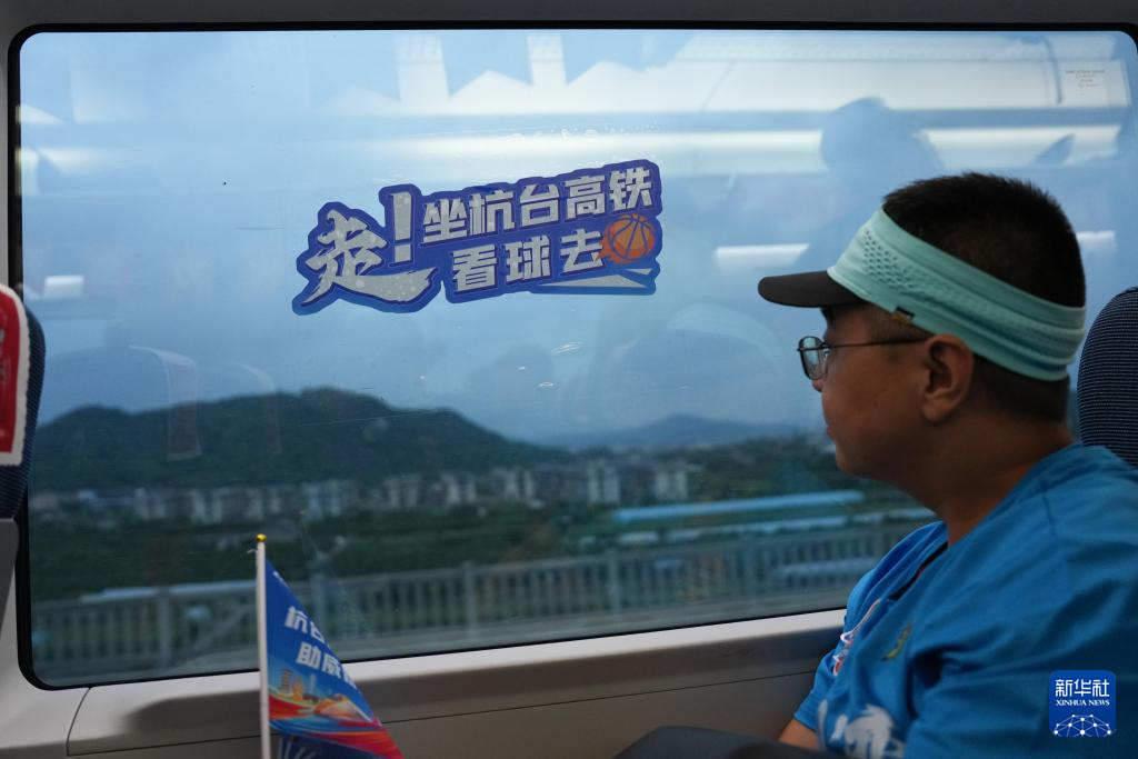 一名球迷乘坐杭台高铁赴台州观看“浙BA”比赛(9月10日摄)。