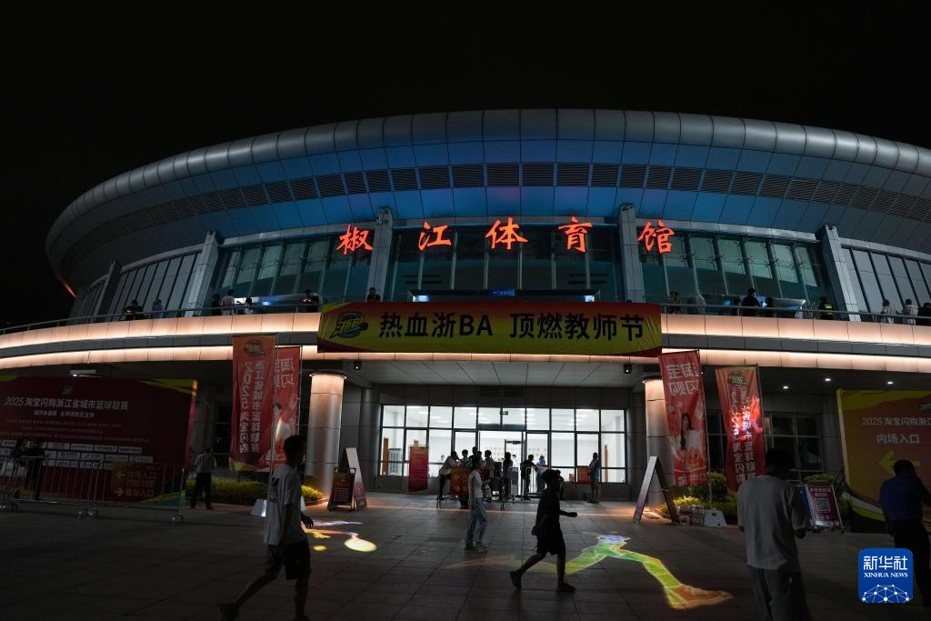 这是9月10日在台州椒江体育馆外拍摄的“热血‘浙BA’潮玩文旅趴”市集,观赛球迷可使用赠送的文旅券享受购物优惠。