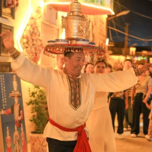 铜盘铜壶稳稳地顶在头上,脚下舞步轻快如风,在新疆库车龟兹小巷内,一群舞者正跳着萨玛瓦尔舞——一种源自千年古龟兹的古老舞蹈。他们的每一个转身都仿佛带着历史的回音,引得围观游客阵阵喝彩。舞至酣时,舞者会邀游客共舞,笑声与乐声融成一片。