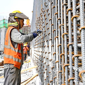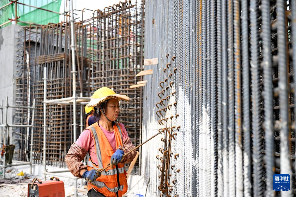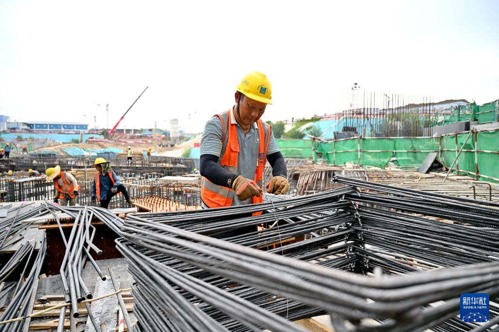 9月12日,工人在雄忻高铁雄安地下段及相关配套工程四标段建设现场捆绑钢筋。