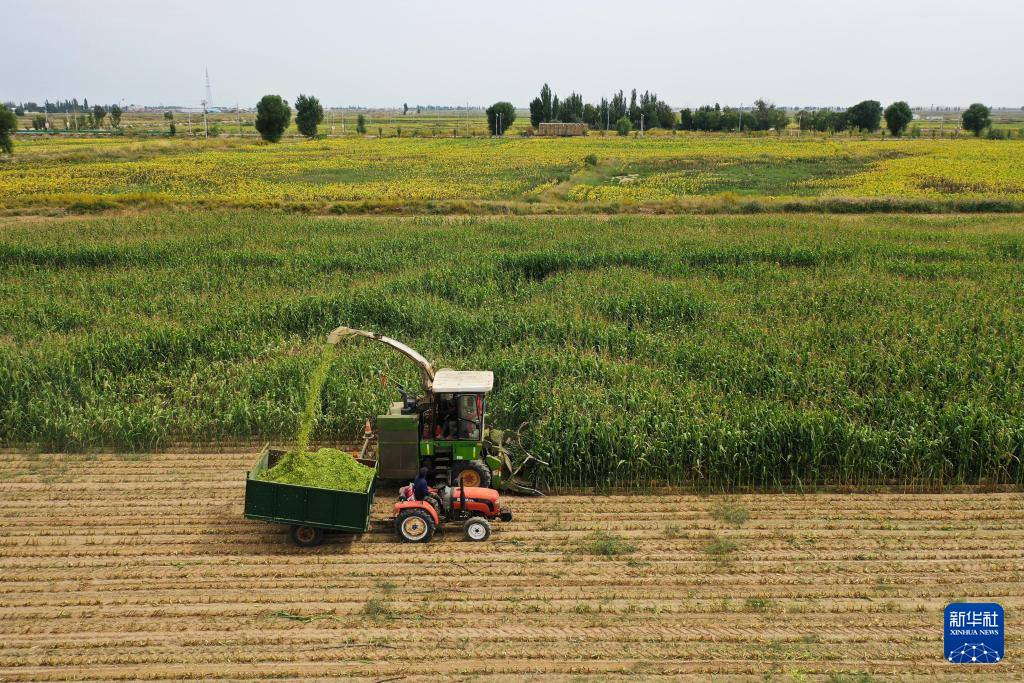 秋日时节,内蒙古鄂尔多斯市杭锦旗农民抢抓农时开展秋收等农事活动,田间地头一片繁忙。