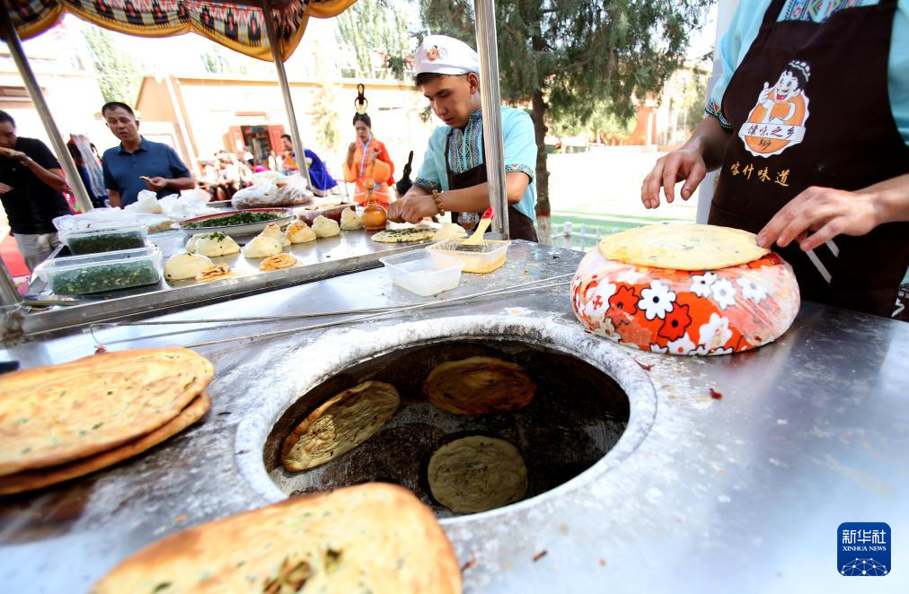 9月11日,在新疆喀什英吉沙县土陶村,村民为游客烤馕。依托国家级非物质文化遗产“维吾尔族模制法土陶烧制技艺”,土陶村深挖非遗价值,通过打造民族特色景观、开展体验研学等,有效探索“非遗+旅游”创新融合发展新路径,并带动快递、民宿、农家乐、水果采摘园等产业发展。