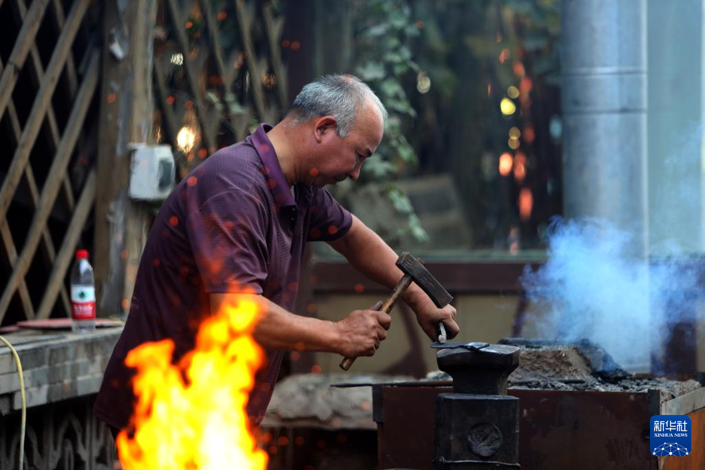9月11日,村民在新疆喀什英吉沙县小刀村制作刀具。2008年,经国务院批准,英吉沙小刀被列入国家级非物质文化遗产名录。