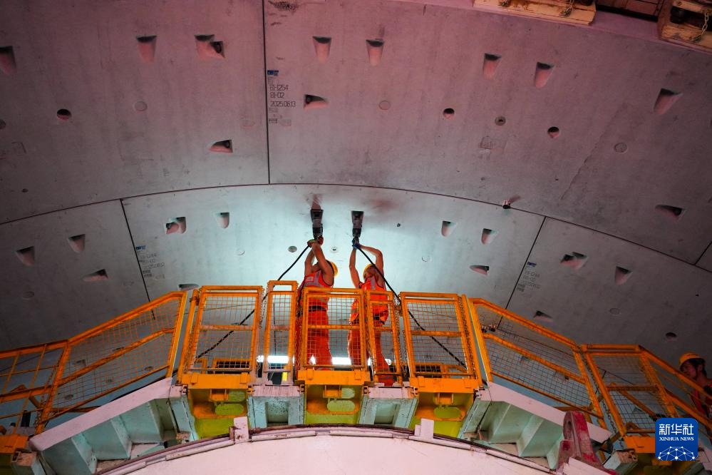 9月12日,中铁十四局施工人员在济南航天大道穿黄隧道盾构掘进施工现场作业。