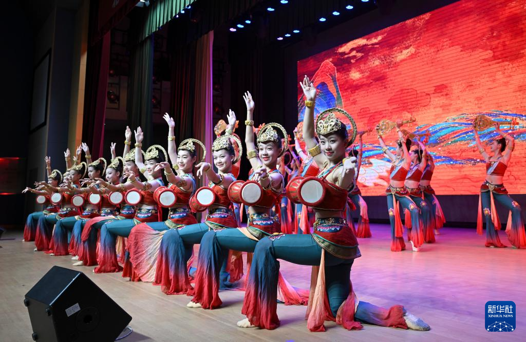9月12日,北京师范大学附属中学金帆舞蹈团在大会上表演舞蹈《又见敦煌》。
