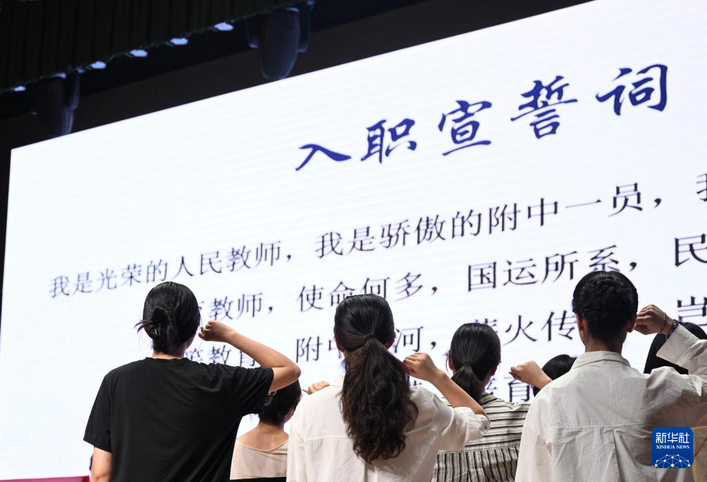 9月12日,在北京师范大学附属中学,新教师进行入职宣誓。