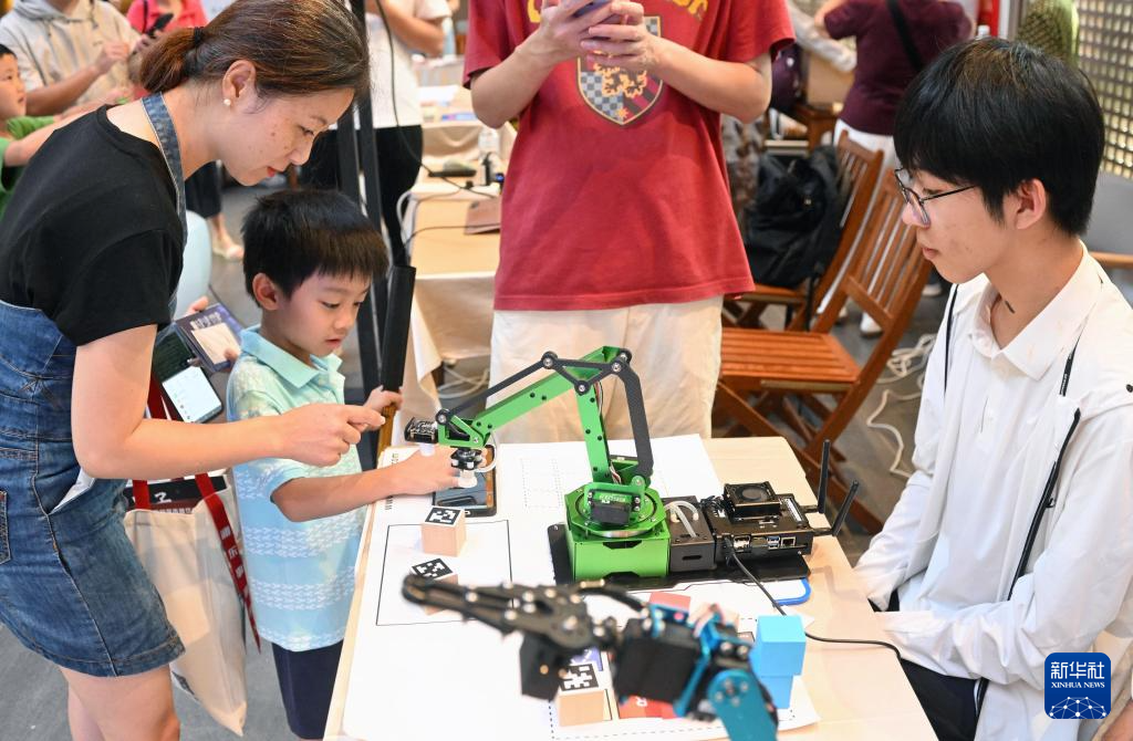 9月13日,社区居民现场体验“AI机械臂”项目。