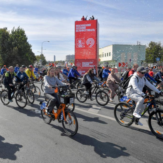 9月13日,人们在俄罗斯莫斯科参加骑行活动。