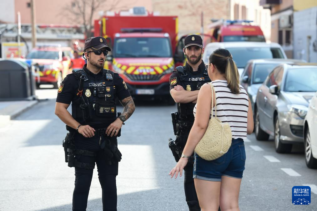 9月13日,在西班牙马德里,警方在爆炸现场附近执勤。
